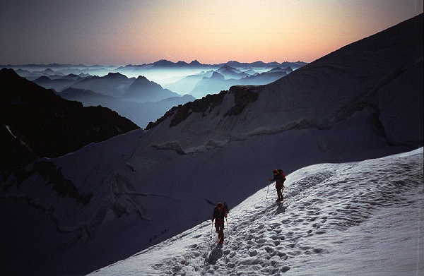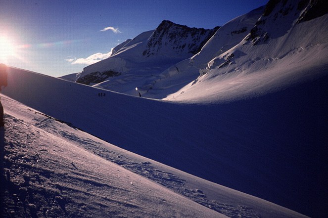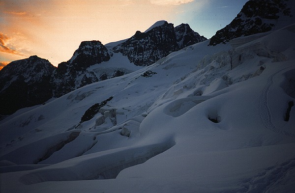 Weiter oben tritt man aus den Schatten ins Licht. Piz Palü.