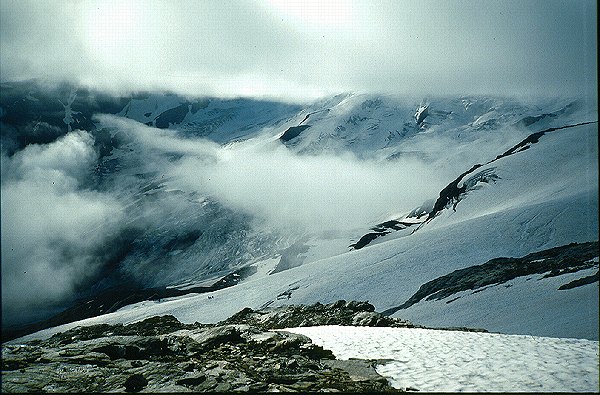 Chapütschin. Der Gipfelaufbau schwebt im Nebel. Aber das siehst du ja selbst ;-)