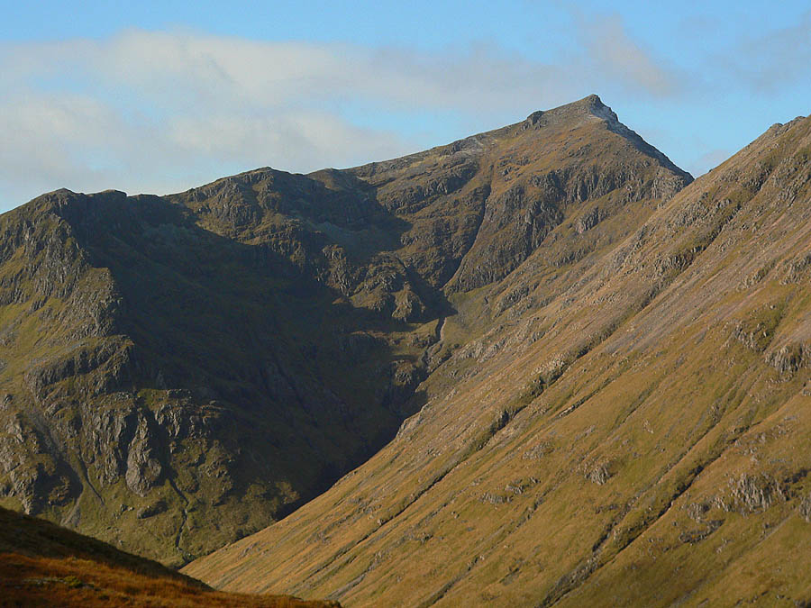 Stob Coire Sgreamhach! Die eindrückliche Flanke sieht man hier von weiter links, vom Stob na Broige aus. (Zurück hierher mit dem Browser).