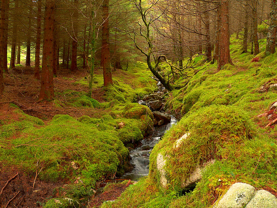 Ein kleines Stück ursprünglichen kaledonischen Waldes im Gleann a Chaolais. Der größte Teil des kaledonischen Waldes wurde für Schiffsbau und dann für den Bergbau abgeholzt. Der heutige schottische Wald ist meist Holzplantage.