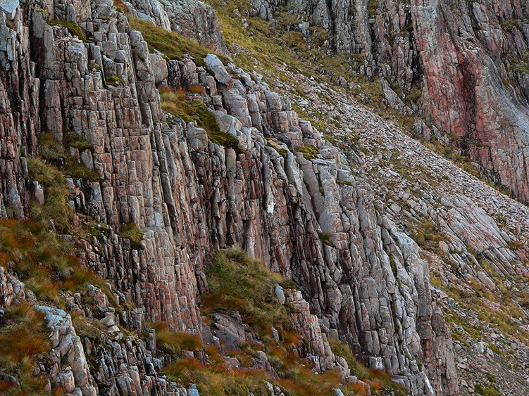 Altes vulkanisches Gestein im obersten Coire na Tulaich.