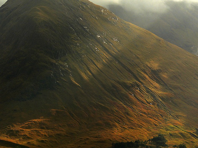 Glen Coe. Gegen Abend bricht die Sonne durch die Wolken.