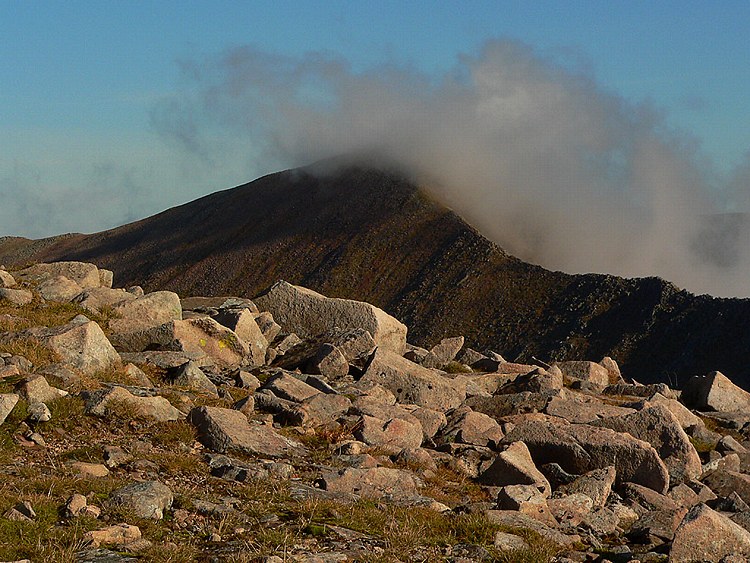 Carn Mor Dearg, im neckischen Wolkenschleier.