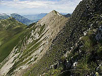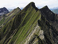 Nur wenige Meter von First entfernt und fast gleich hoch (ohne Namen in der Landeskarte); damit gleiche Sicht auf die entfernteren Gipfel. Aber nur auf diese. Und gleiche Sicht heißt nicht gleiche Photos.