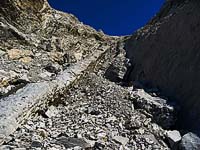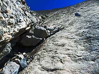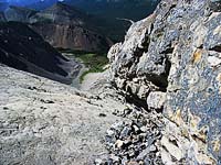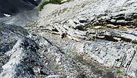 Für den Aufstieg eignet sich die Route zwischen den Schichten besser als die «rolling stones» der Geröllhalde. Dazu noch aufregender, weil man erst oben weiß, ob man von unten die Schwierigkeiten wirklich gesehen und richtig eingeschätzt hat :-)