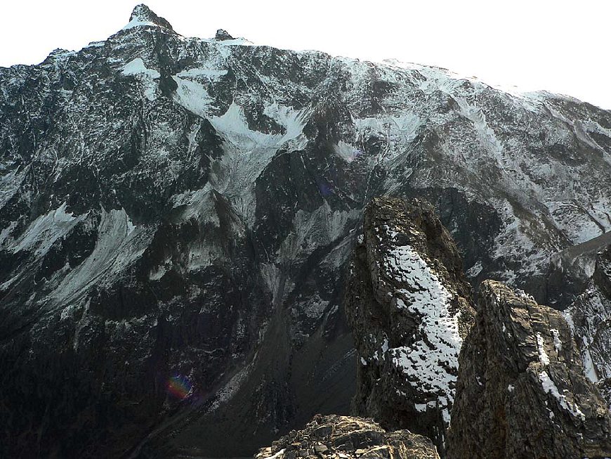 Die Hockenhörner. Der Rücken rechts von ihnen besteht aus den ältesten Gesteinen der Schweiz, sie sind kaledonisch. Die Hockenhörner selbst sind viel jünger.